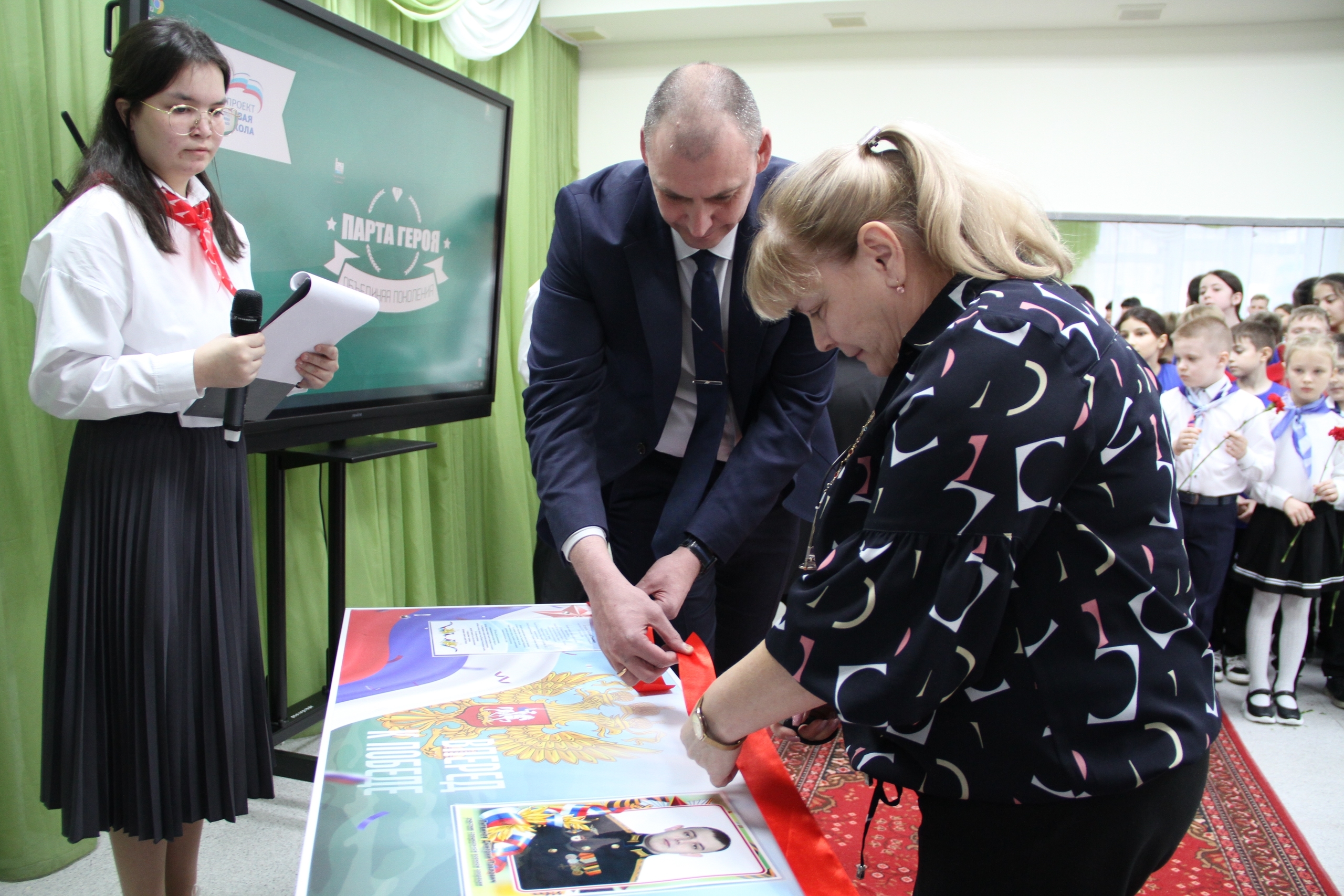 – День героя посвящен всем тем людям, которые защищали нашу Родину в годы Великой Отечественной войны, национальных конфликтов и тем, кто сегодня сражается за наши территории и охраняет рубежи. Цель мероприятия заключается в том, чтобы никто никогда не забывал свою историю и знал героев, которые когда-то учились в вашей школе. Вы должны понимать, что эти люди сражались за то, чтобы сегодня у вас была возможность продолжать учиться и жить мирной жизнью. Эти парты будут использоваться в учебном процессе, тогда вы будете каждый день видеть имена героев и помнить об их подвиге, – сказал Алексей Владимирович, обращаясь к школьникам.